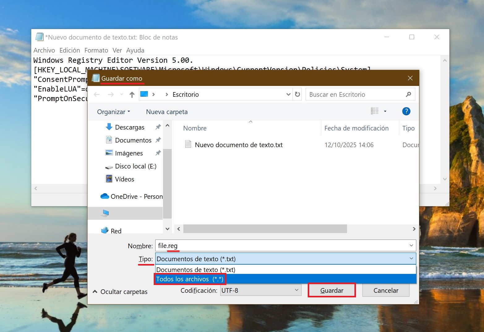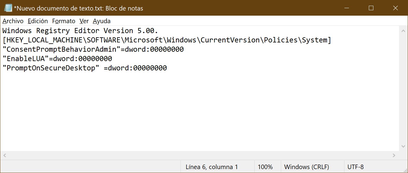 Crear un archivo REG con el Bloc de notas en Windows 10