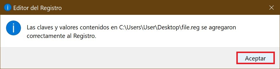 Haz doble clic con el botón izquierdo del mouse sobre el archivo .reg.