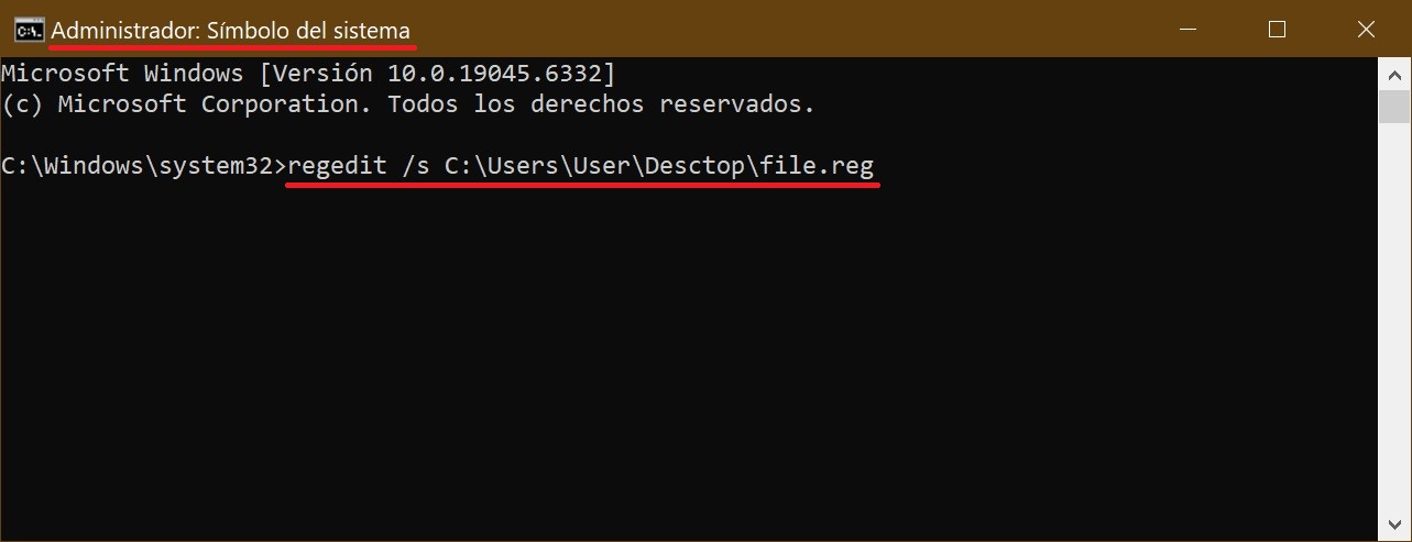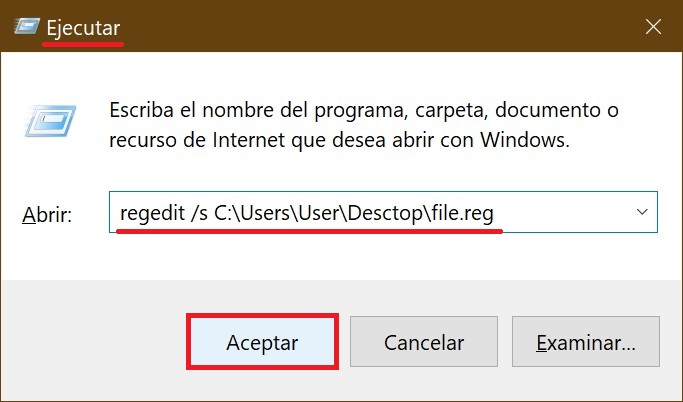 regedit /s Ruta_al_archivo\Nombre_del_archivo.reg